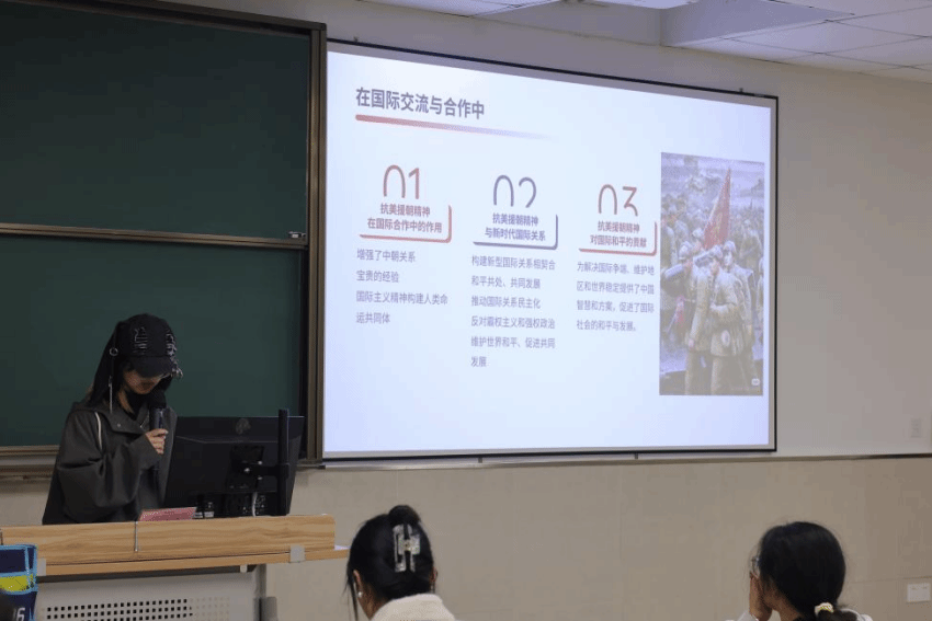 最后,主讲人对抗美援朝精神进行未来展望。在国际视野中,随着全球化进程的加深,抗美援朝精神作为一种和平与友谊的象征,它不仅是中朝关系的历史见证,也成为了国际友好合作的一个典范,激励着各国人民在面对困难和挑战时展现出团结互助的精神。在未来的国际交流中,中国将继续发挥桥梁和纽带的作用,促进不同文明之间的交流与融合。