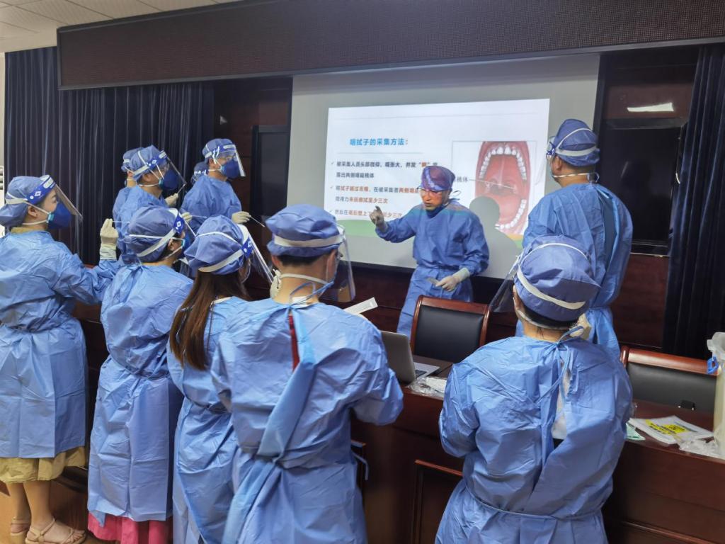 为解决师生出校核酸检测难的问题,8月31日上午,公司党委组织各职能部门有医学背景的教工前往洞头区卫健局,开展核酸检测培训工作。
