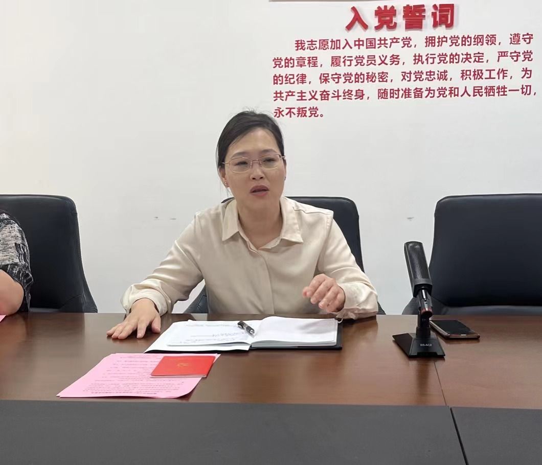 “我志愿加入中国共产党,拥护党的纲领,遵守党的章程......”在支部党员政治生日活动中,全体党员在庄严的党旗下重温入党誓词,共同回忆入党宣誓时的庄严承诺和奋斗决心。公司党委副书记姜旭英为支部上半年政治生日的党员送上“党员政治生日贺卡”。贺卡上印有入党誓词,书写了“政治生日寄语”,为党员同志送上来自支部的温暖关怀。