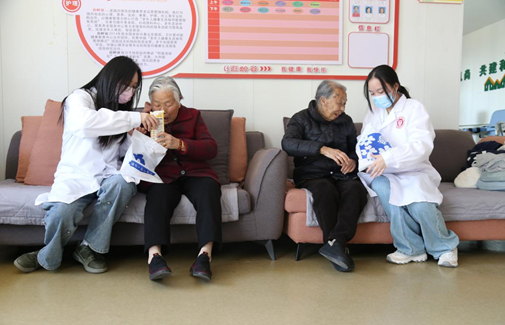 活动包含三项,在“笔墨点点”环节,志愿者通过现场书写毛笔作品,为老人送去春日祝福。同时,志愿者分发《健康报告单》并引领老人到达爱心义诊区域。志愿者为老人进行血压血糖测量,并在报告单上记录相关数据,根据测量结果,给老人提出针对性意见,早日防范,早日注意。对于有肌肉、关节疼痛的老人,志愿者重点进行了艾灸、推拿等舒缓筋骨的理疗,在此过程中,志愿者亲切与老人交流,针对疼痛部位进行重点按摩,仔细倾听老人诉说病史,并提出相关注意事项。活动结束之际,志愿者分发暖心福袋,送出现场书写的毛笔作品,通过互动交流形式,与老人拉近距离,缓解家人不在身边的孤独感,切实满足老人情感需求。22级全科6班刘辛予同学表示:通过这次活动,我更加意识到了关注老人常见健康问题的重要性,比如高血压、高血糖等,我也很开心自己所学的医学知识能够帮助到他们,在春日为老人送去温暖。