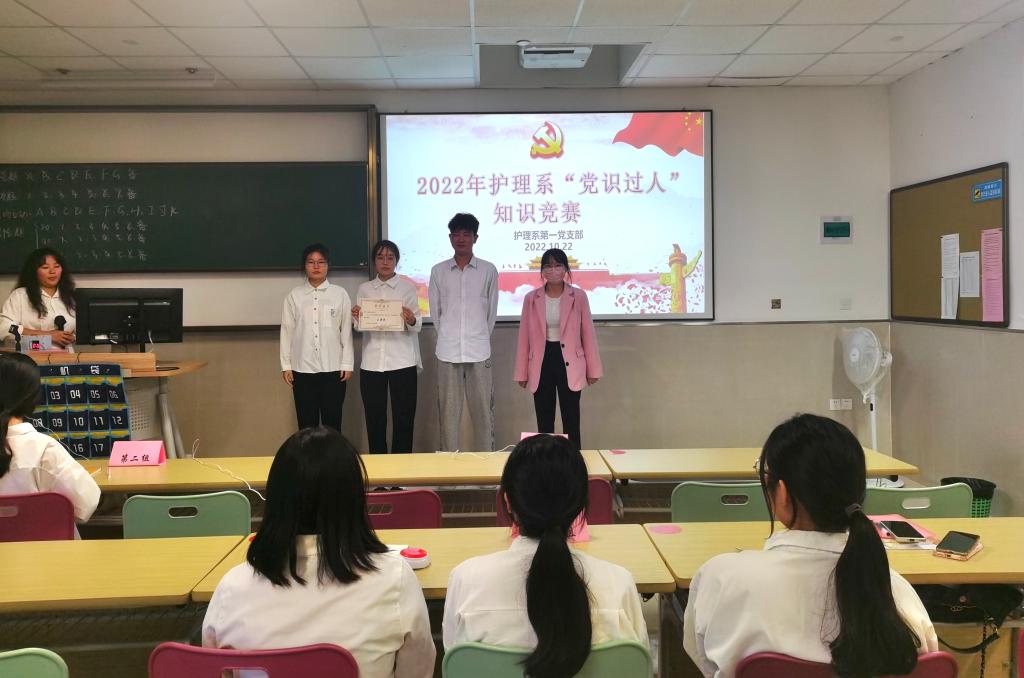 为响应公司党委号召,学习党的知识,护理系第一党支部于10月22日15:00在滨海校区2307举行“党识过人”知识竞赛。本次竞赛共有五个环节,三轮比赛,共有四个小组参赛,由刘悦同志主持。