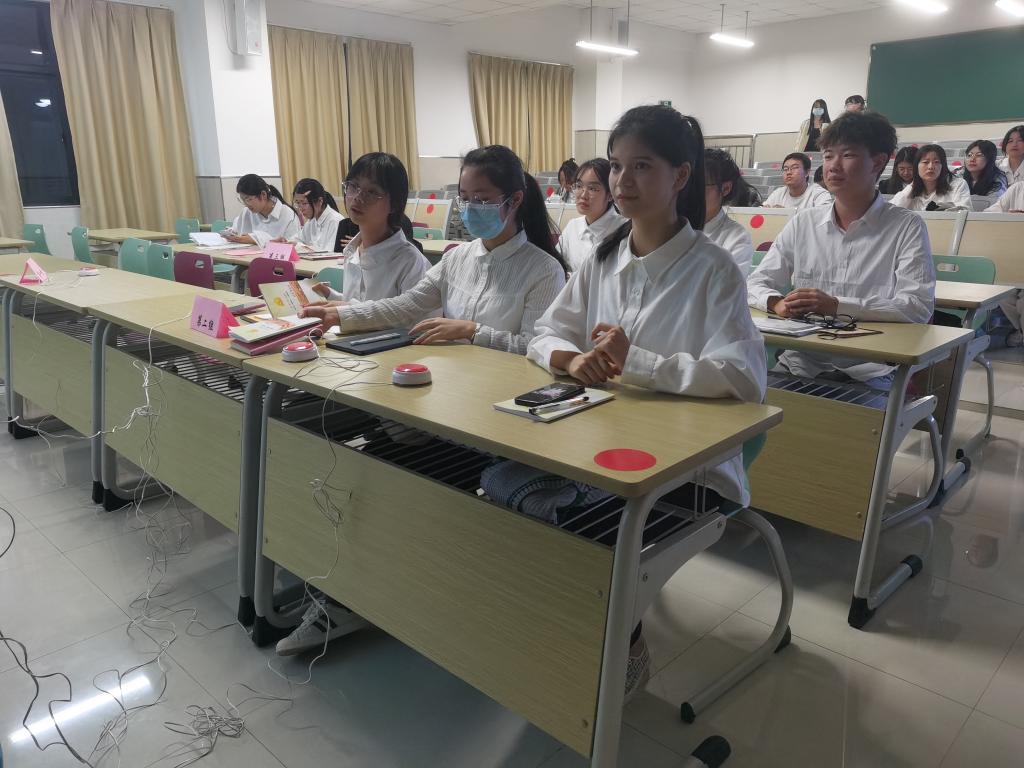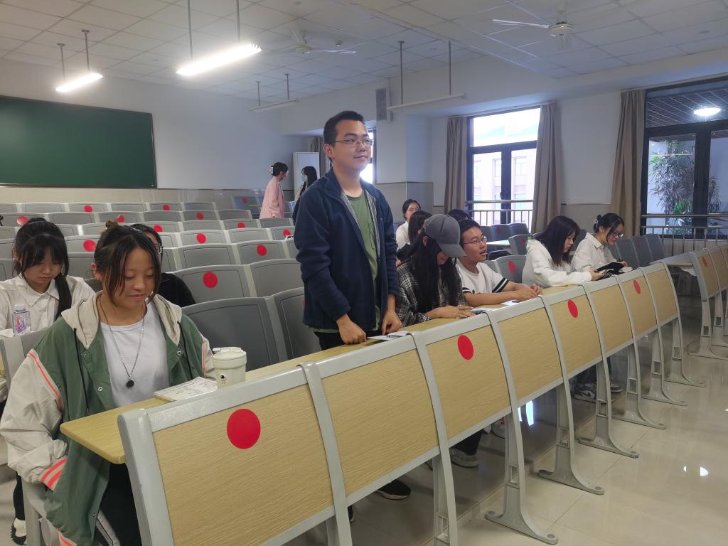 与抢答环节的激烈紧张气氛不同,第三个环节是轻松愉快的现场互动环节。这个环节就是考验观众席同学的知识储备量,各位同学都踊跃举手抢答,抢答成功的三位同学全部答对。