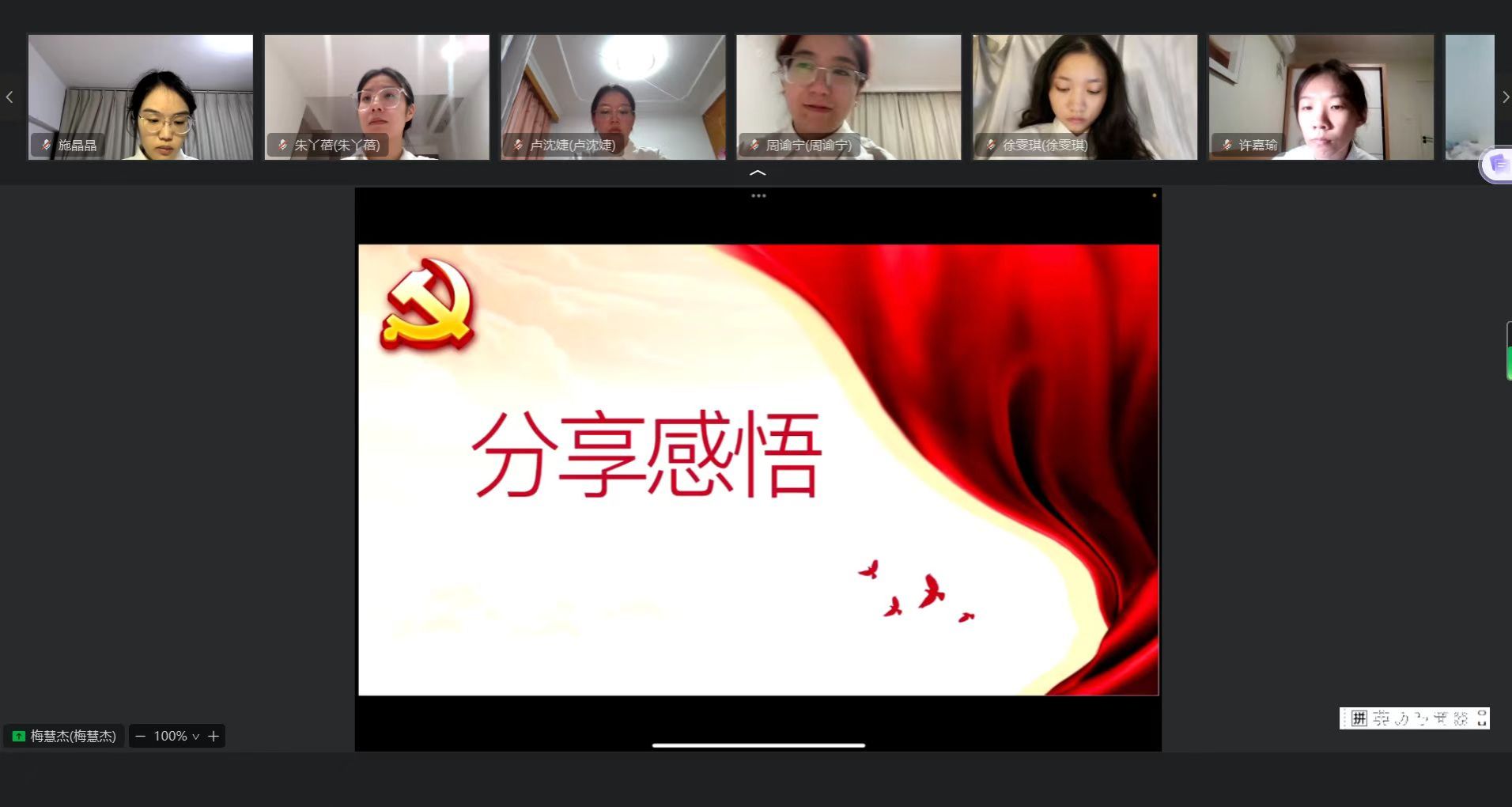 随后,主持人带领我们学习《中国共产党不合格党员组织处置办法》。它是一部专门就不合格党员组织处置作出规定的党内法规,是提醒党员自我监督、自我管理、永葆党员底色的重要措施。在此次会议上,各位党员同志都分享了对于《办法》的感悟体会,纷纷表示自己虽然在外实习,但仍需不断加强党性修养,要将《办法》作为自己时刻遵循的行为准则,在日常生活中保持清醒的头脑,遵守党的各项规章制度,对标不合格党员的情形,严格自律,反思自身存在的问题,有则改之、无则加勉,不断提高自身的政治觉悟,同时端正入党动机,坚定理想信念,对党忠诚;在工作中认真严谨,勇于担当,主动作为,与群众良好沟通,密切联系群众,尽己所能帮其排忧解难,积极向党组织靠拢;在行动上与党组织紧密相连,采取实际行动去筑牢纪律防线,切实做到理论联系实际,尽自己所能服务人民、服务社会,起先锋模范作用。