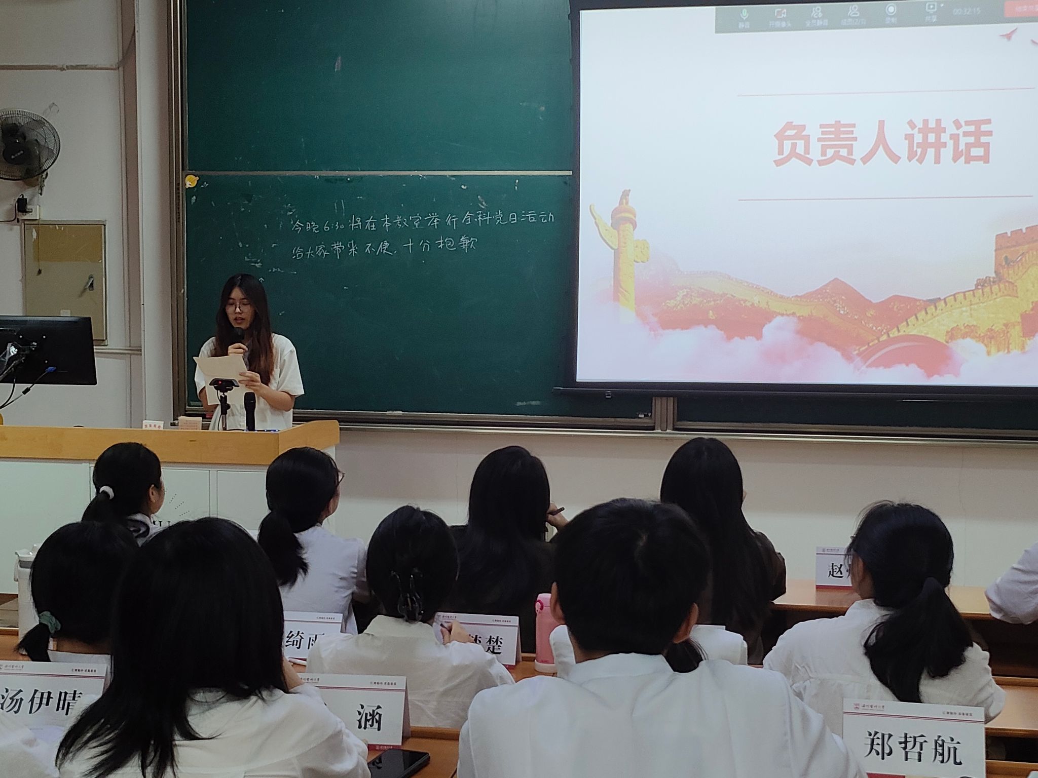 李洁老师表示,医学一系第一党支部不仅是一个党支部,更是医学一系党建工作的“核心枢纽”。每位支部成员都承载着党支部不可或缺的关键职责,希望所有支部同学能够团结一致,携手并进,在言行举止上做到严谨自律,相互之间包容互助。另外,在支部工作中,遇到任何挑战或困难,及时向老师沟通反馈。同时,老师鼓励支部内的每位同学勇于表达思考、新想法,为医学一系的党建工作注入更多活力,将支部建设的更为出色。