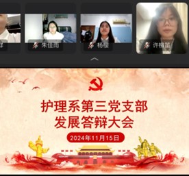为了进一步加强员工党支部的建设,提高党员队伍的整体素质,为支部输入新鲜力量,K1体育护理系第三党支部于2024年11月15日18:00在钉钉线上召开发展答辩大会。本次发展答辩大会由汪玲玲老师主持,出席大会的有护理系第三党支部书记汪玲玲老师和全体员工党员,以及参与答辩的六名入党积极分子。