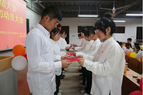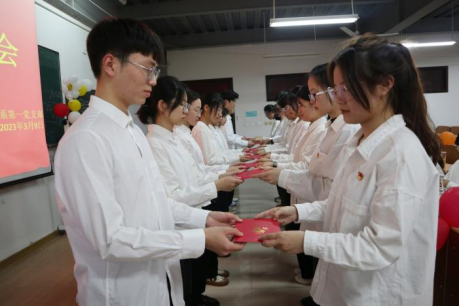 老党员向新一批预备党员分发政治生日贺卡和党徽,祝贺他们成为预备党员,并希望他们在今后的道路上不忘初心,砥砺前行,继续发挥党员的先锋模范作用,努力成为一名合格的党员。