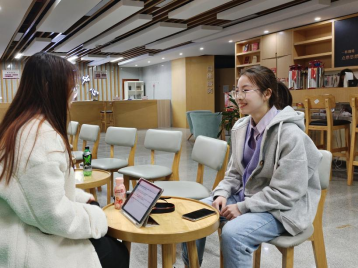 早春的校园里处处是怒放的鲜花,一派勃勃的生机。在这样的春日下的傍晚我们将本次的受访嘉宾李佳丹同学邀请到党群服务中心的咖啡店旁进行采访。