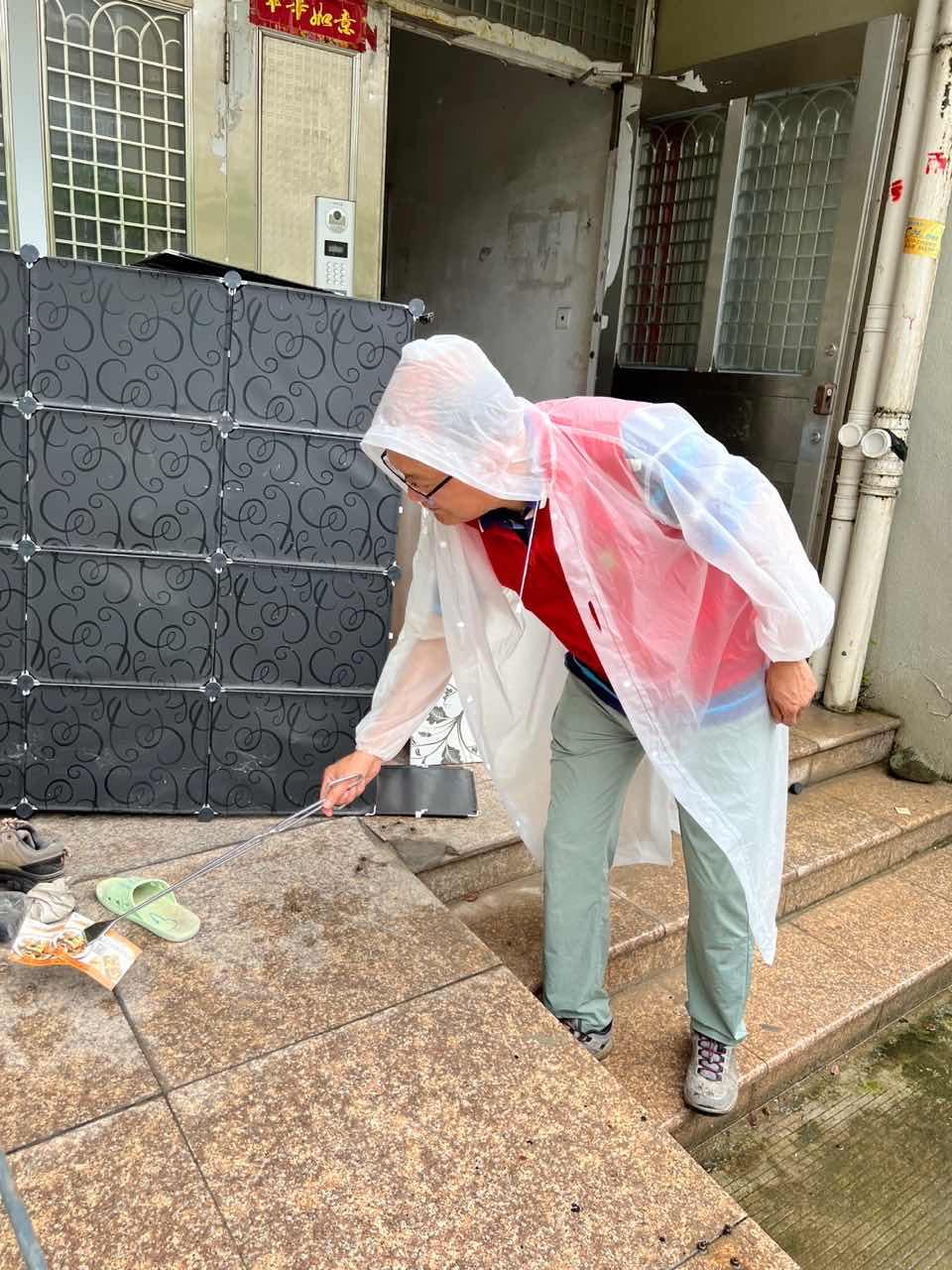 暴雨没有影响各位支部党员如期进行活动的决心。支部的党员志愿者们身穿红马甲,披上雨衣,以饱满的热情和积极的做事态度投身到文明治理活动中来,对洞头区打水庵社区服务中心所在的小区及其周边街道的卫生情况进行详细的查看。党员志愿者们对小区里公共走廊的窗台上的陈年垃圾进行清理,对小区花坛里的烟头进行清理,并与洞头区教育局的党员同志们进行充分的交流,共同致力于引导社区群众树立良好的卫生意识,共同营造干净整洁的社区环境。