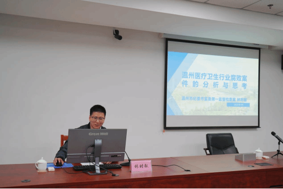 (市纪委监委第一监督检查室副主任林时献以“温州医疗卫生行业腐败案件的分析与思考”为主题开展警示教育)