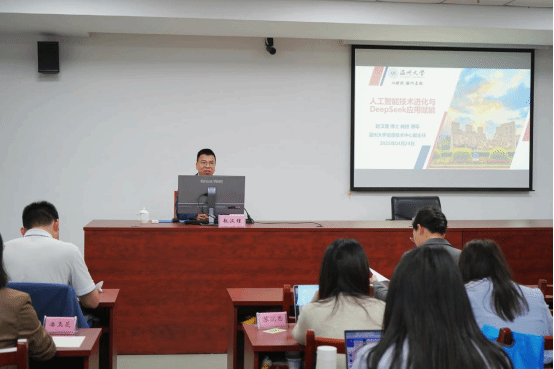 (温州大学信息技术中心副主任赵汉理教授围绕《人工智能技术进化与DeepSeek应用赋能》授课)