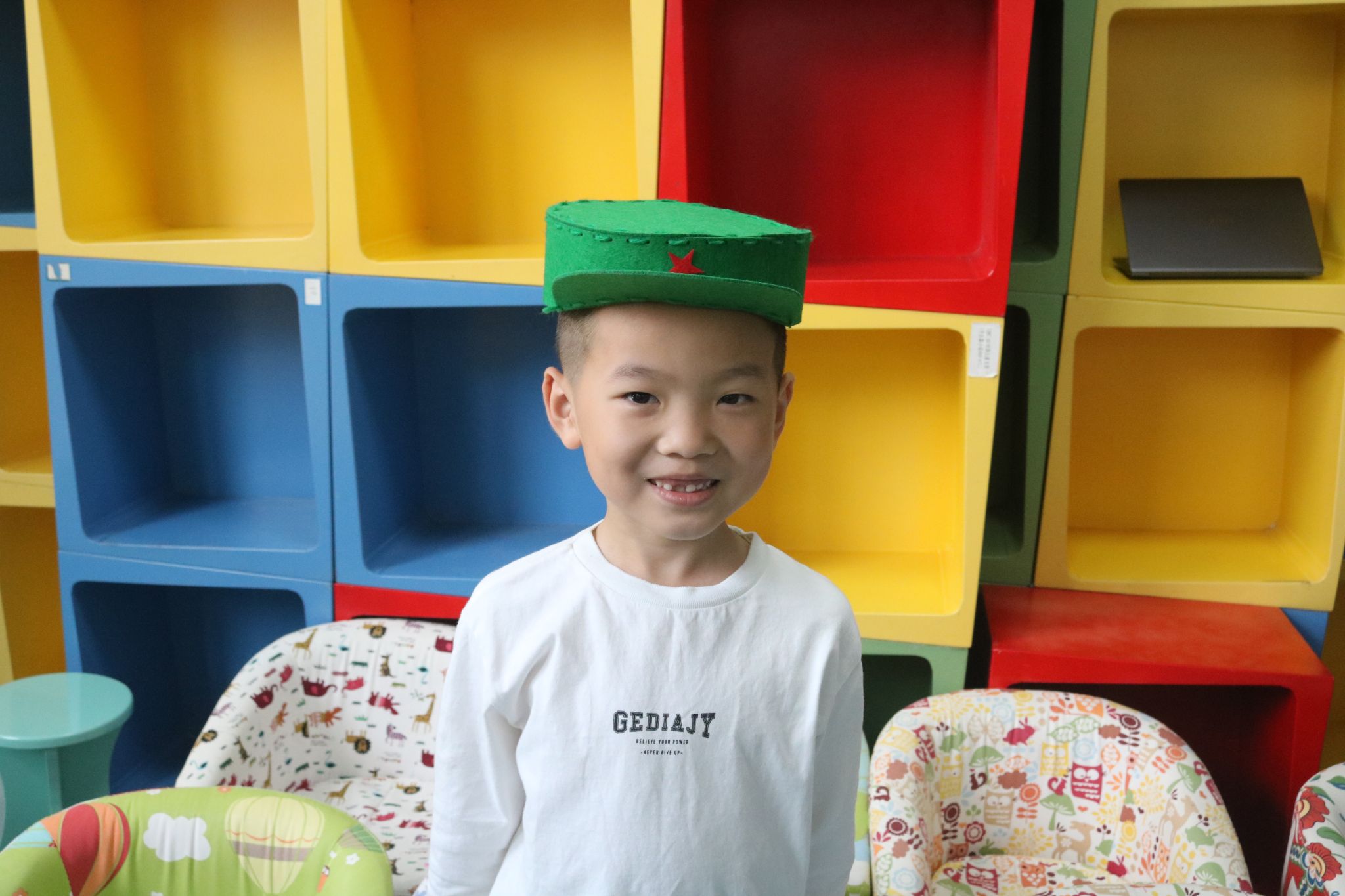 当鲜红的五星被牢牢固定在帽子上,小朋友们迫不及待地佩戴上这象征光荣的劳动成果,脸上满是欣喜与自豪。通过这一次的学习,少先队在小朋友们心中有了沉重的分量。在队旗的引导下,小朋友们将会努力成长为德智体美劳全面发展新时代好少年,时刻准备着为实现中华民族伟大复兴的中国梦贡献力量!