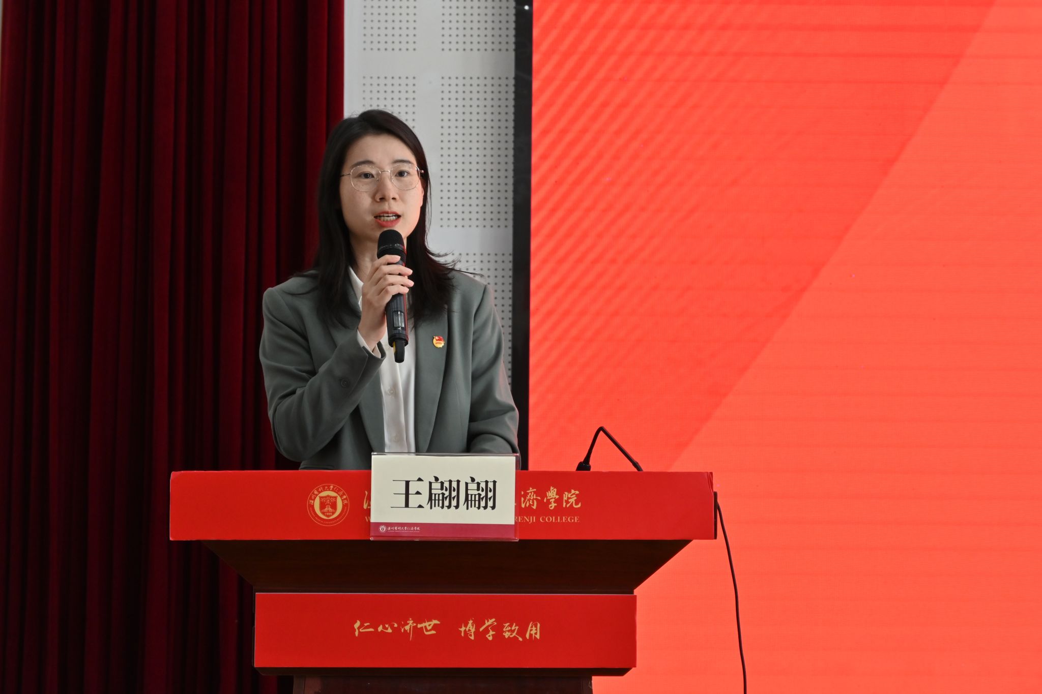 仪式在庄严的国歌声中拉开帷幕。团委副书记项珍飞宣读新团员名单。随后,各系团总支书记为新团员颁发团徽与团员证,并在优秀团员代表王聪颖的带领下宣誓。新发展团员代表王璐轩同学表达了自己成为共青团员的自豪感以及对未来学习、工作生活的规划与憧憬。优秀团员代表潘诗蓓也以个人经历鼓励新团员们要在火热的社会实践中创造无悔的青春。最后,公司团委书记王翩翩鼓励新发展团员们要坚定理想信念树立远大理想、刻苦学习知识练就过硬本领、勇于挺膺担当努力。