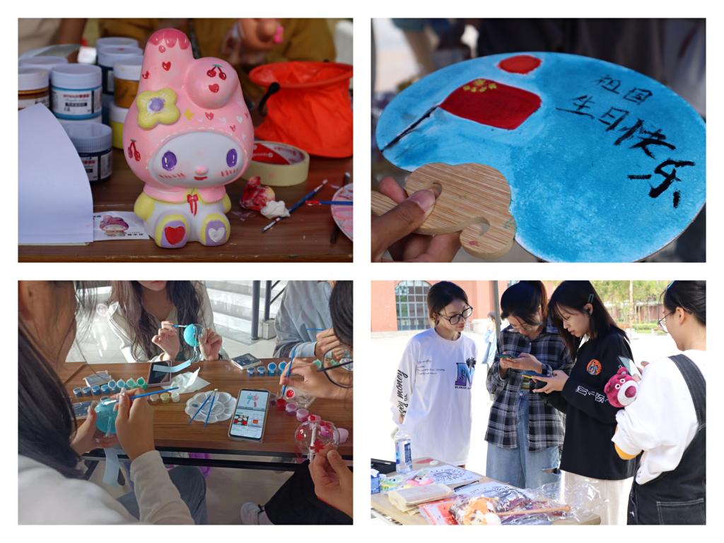 本次系列活动共分为影视观赏、艺术文学、益智游戏、文体活动四大板块。在影视观赏板块,开设《八佰》、《长津湖之水门桥》、《钱学森》等经典电影,重温红色记忆;在艺术文学板块,“你好”书信、“学霸面对面”、国庆Vlog征集、手绘风铃、国风物品设计等活动陆续推出,鼓励同学以书写、绘画等艺术方式表达自我。值得一提的是,石膏娃娃涂色尤其受到大家的欢迎,还未到活动举办时间,广场上领取石膏娃娃的帐边便排起了长龙。此外,狼人杀、剧本杀和emoji猜猜看等益智类游戏也让同学们沉浸娱乐的同时锻炼了口语表达能力和思维能力,加深了对彼此的熟悉,增进友谊。另外,由泰迪熊医院和乐器社带来的精彩节目演出,也让同学们大饱眼福。