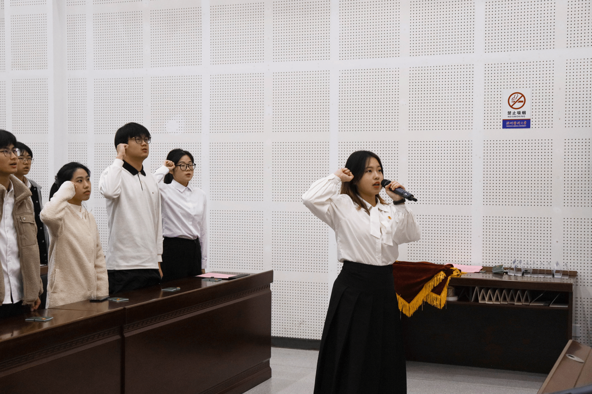 仪式在庄严的国歌声中拉开帷幕,全体师生肃立齐唱,展现出青年一代对党和祖国的深情厚爱与崇高敬意。公司团委副书记项珍飞宣读了新团员名单,由公司团委书记王翩翩、团委副书记项珍飞为新团员佩戴团徽、颁发团员证。