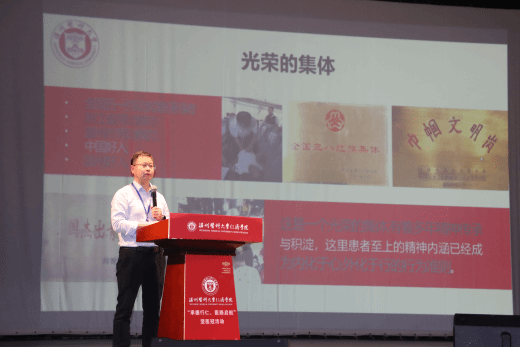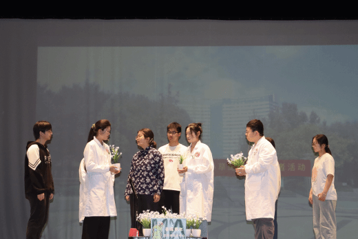 4月19日,在K1体育滨海校区的竖医冠仪式活动将系列活动推向高潮。仪式上春晖青年志愿者服务中心原创情景剧《生命的奇迹》,艺术再现"兰小草"匿名行医十五载的动人故事;温医大医管处副处长、温医大附一院急诊科洪广亮教授结合救治案例,阐释"德术并重"的现代内涵;随后,洪老师为医员工代表扣上白大褂上的第一颗纽扣,寄托了他对医学新生的殷切嘱托和期望。最后,全体医员工在医学誓言宣誓中完成身份转化,洁白医袍与青春誓言交相辉映,勾勒出新时代医员工的精神图谱。