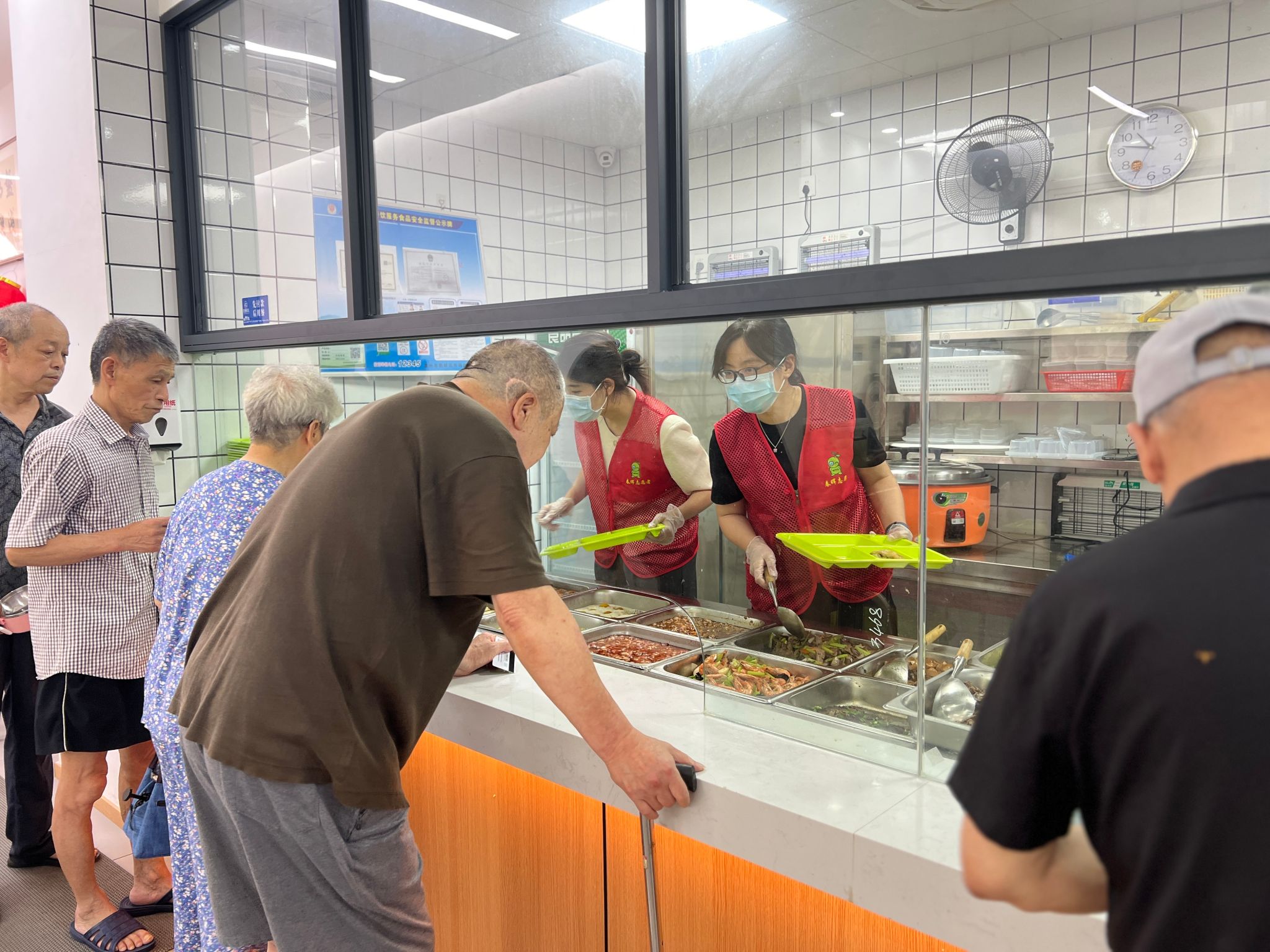 党员教师们身穿红色马甲,精神饱满地投入到各项工作中。他们有的协助老人点餐,耐心询问老人的口味偏好;有的负责引导老人入座,细心关照他们的身体状况;还有的在厨房与餐桌间穿梭,确保每一份饭菜都能准时送达居民手中。