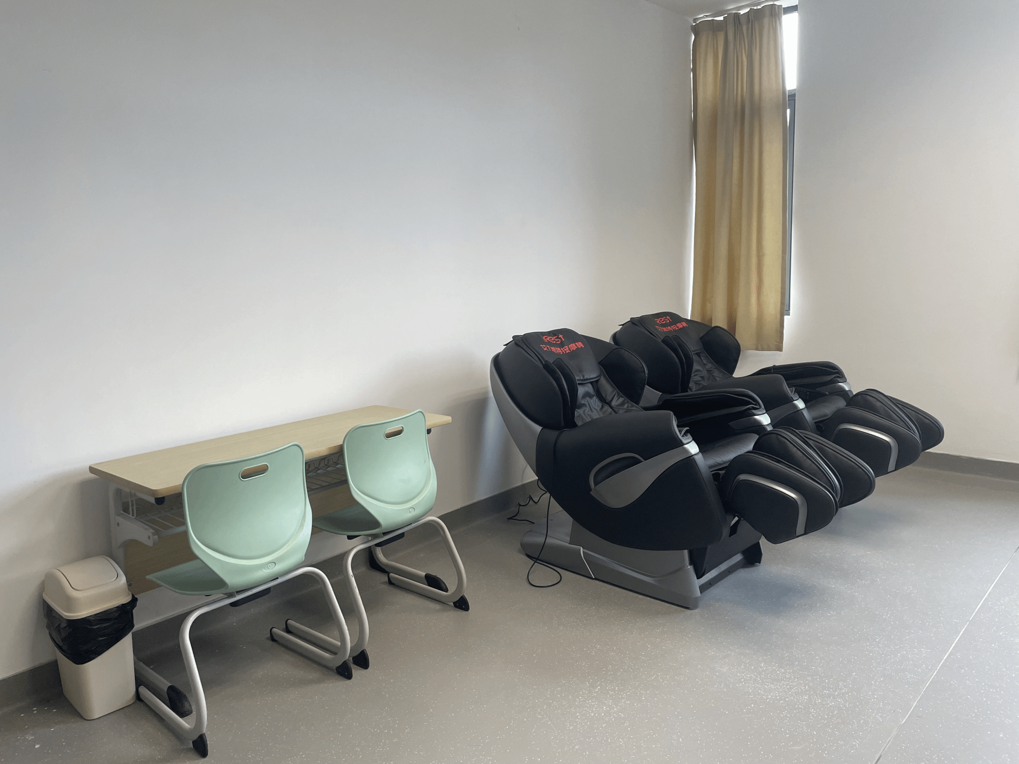 教师休息室设在至诚楼1205和1305室,开放时间为每天早8:00至晚20:00。休息室内配备了沙发、办公桌椅和多功能按摩椅,让教师在疲惫之余能够得到充分的休息和放松。