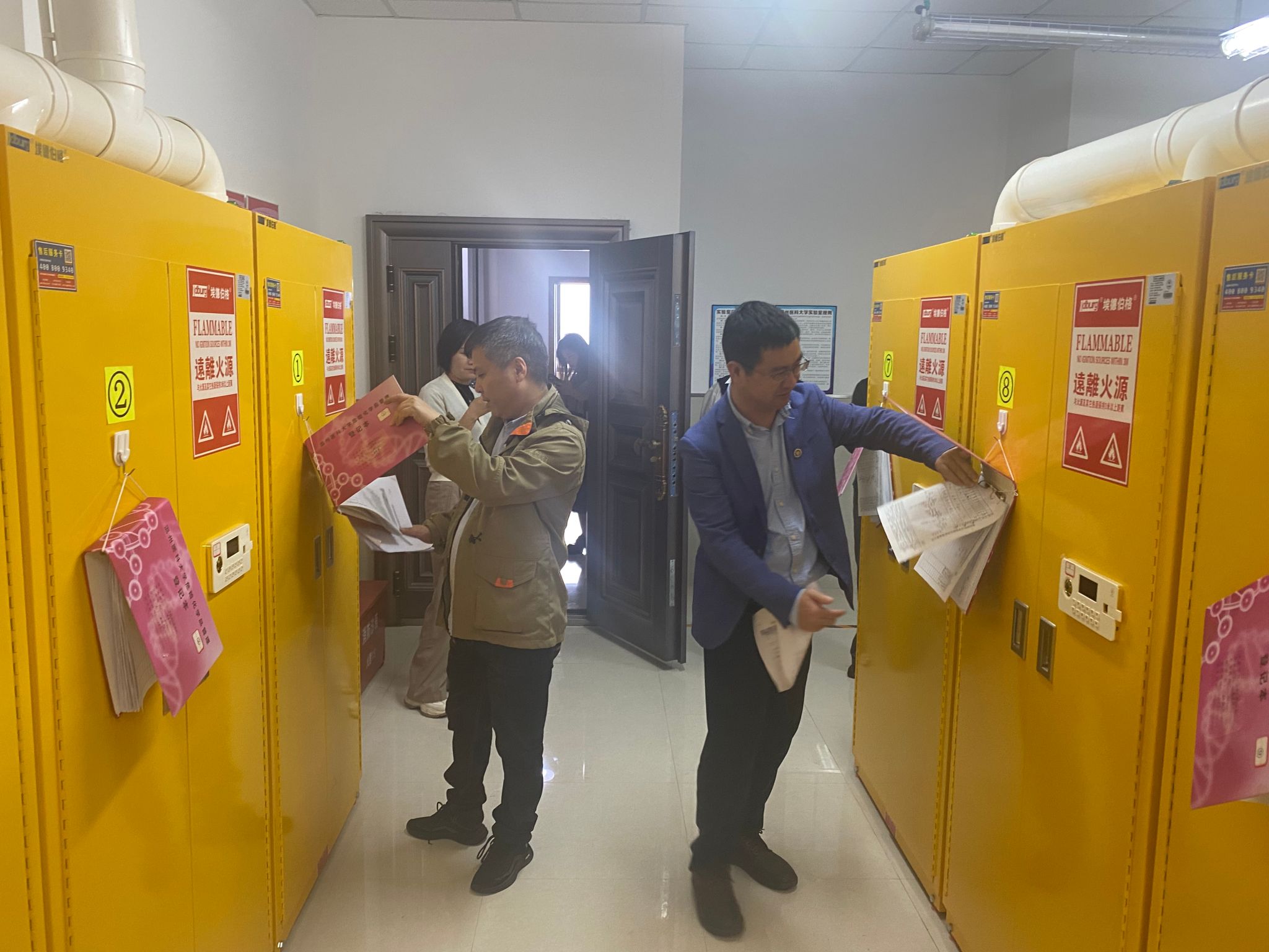 检查组深入各个实验室,对实验室的消防安全设施、危化品仓库、台账建设、安全标识、用电安全、物品存储及废弃物处理等各方面进行了细致的检查,确保各项安全措施落实到位。对检查中发现的问题, 检查组当场进行指正并要求及时完成整改。