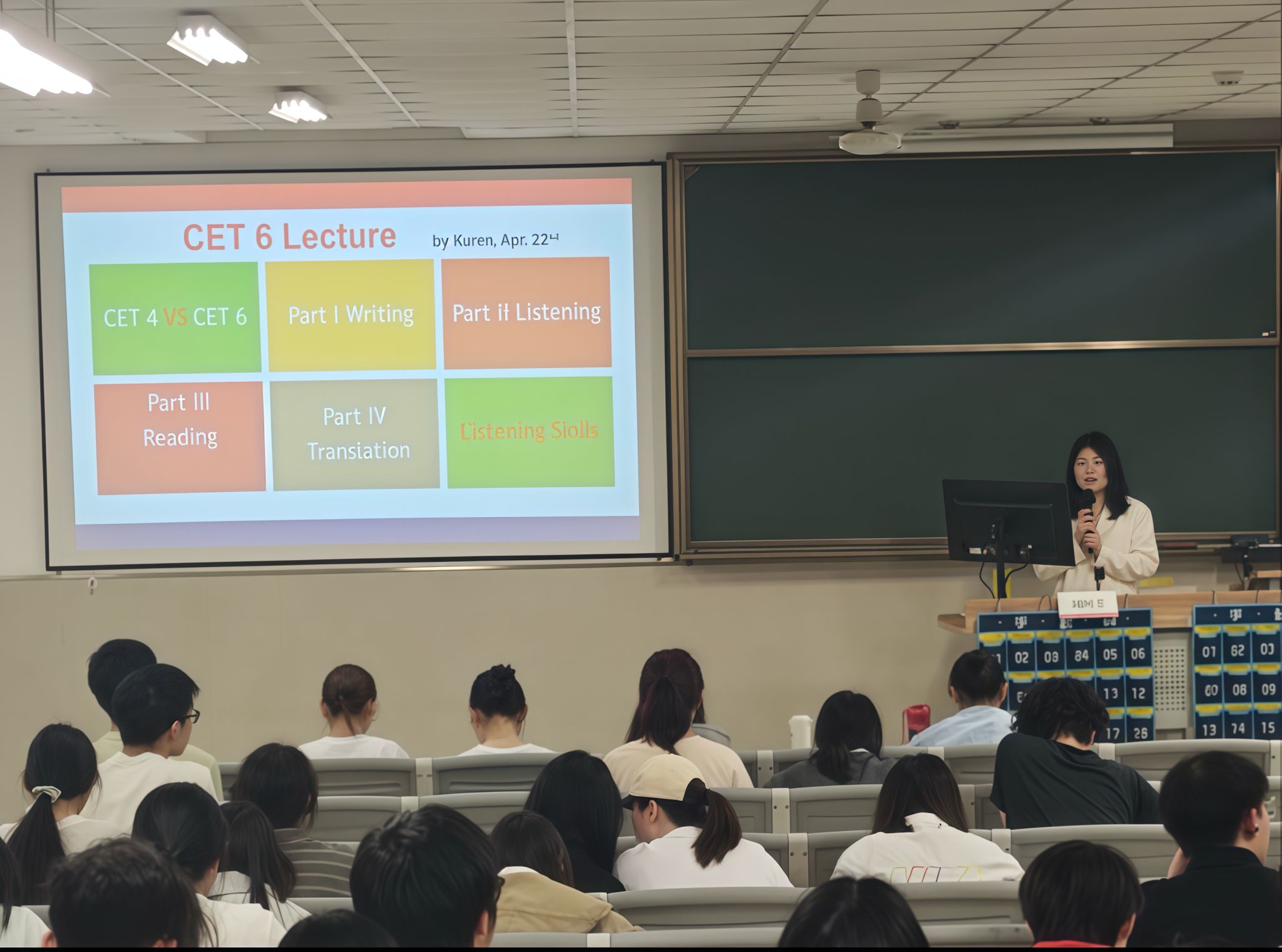为助力员工高效备战大学英语六级考试,公司与外国语公司于近日联合组织开展滨海校区英语六级专题讲座。本次活动特邀拥有20余年丰富外语教学经验的资深教师周阿芹担任主讲,为同学们带来了一场干货满满的备考指导。