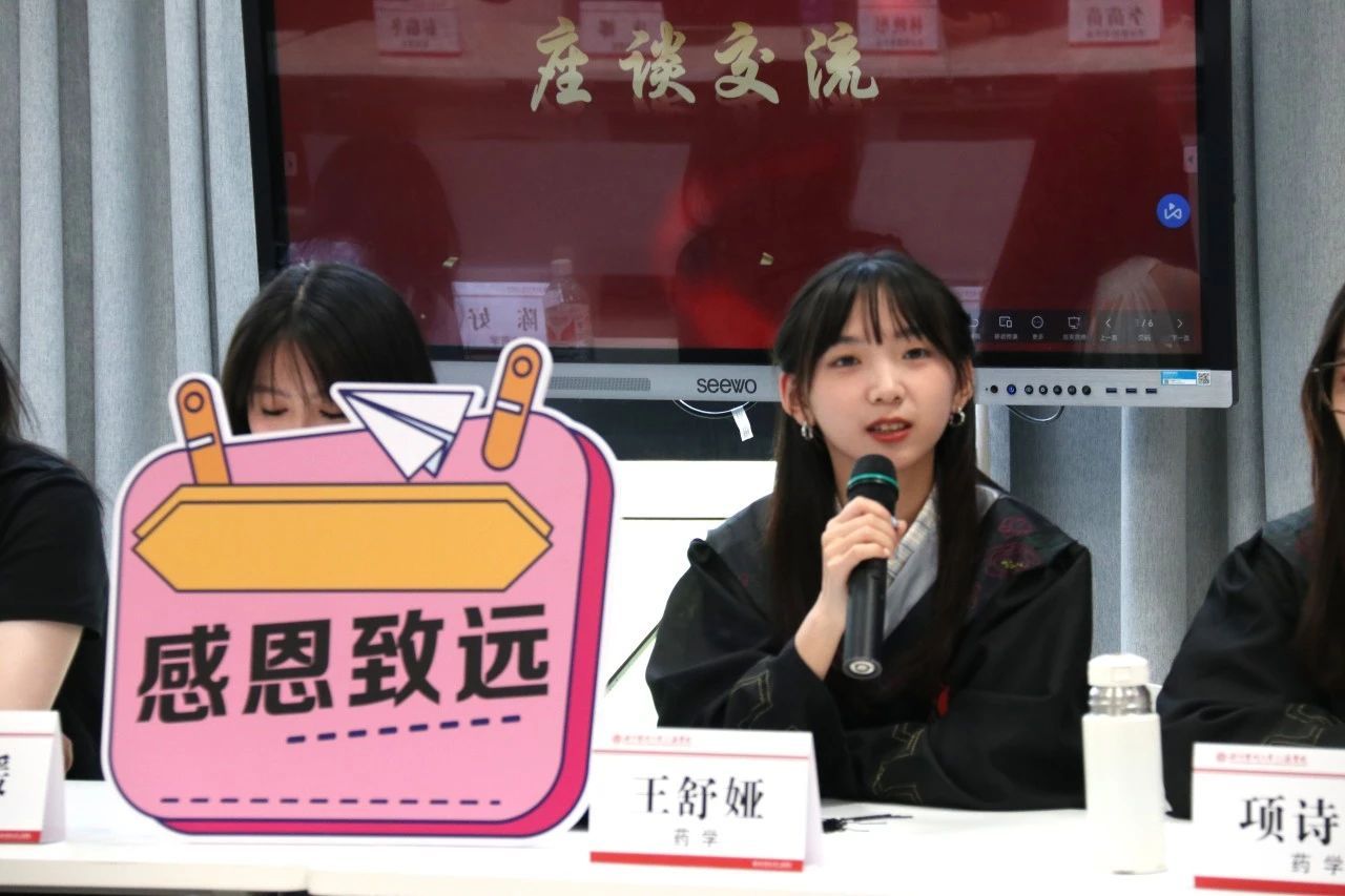 彭红雷为座谈会做总结发言,她向毕业生代表表示热烈祝贺和深切祝福,并给大家送上了毕业寄语。她指出,仁济学子要树立爱党爱国的核心价值观。今后无论身处何岗位,都要以此作为人生基石,以此作为指引方向的明灯。她强调以德为先,大德在前,道德修养不仅是个人品质的体现,也是个人发展和社会进步的基石。她鼓励大家在未来的职业道路中积极探索,将所学所知运用到实践中,对一切事务秉持真心,脚踏实地。最后,她提出公司永远是毕业生们的港湾,希望同学们毕业后仍与老师们、学弟学妹们保持良好的沟通,为母校发展提出宝贵建议。