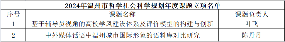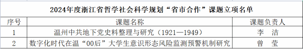 此外,温州市社会科学界联合会发布了《关于2024年度温州市哲学社会科学规划年度课题立项名单的通知》,公司也有两个项目成功获立项。