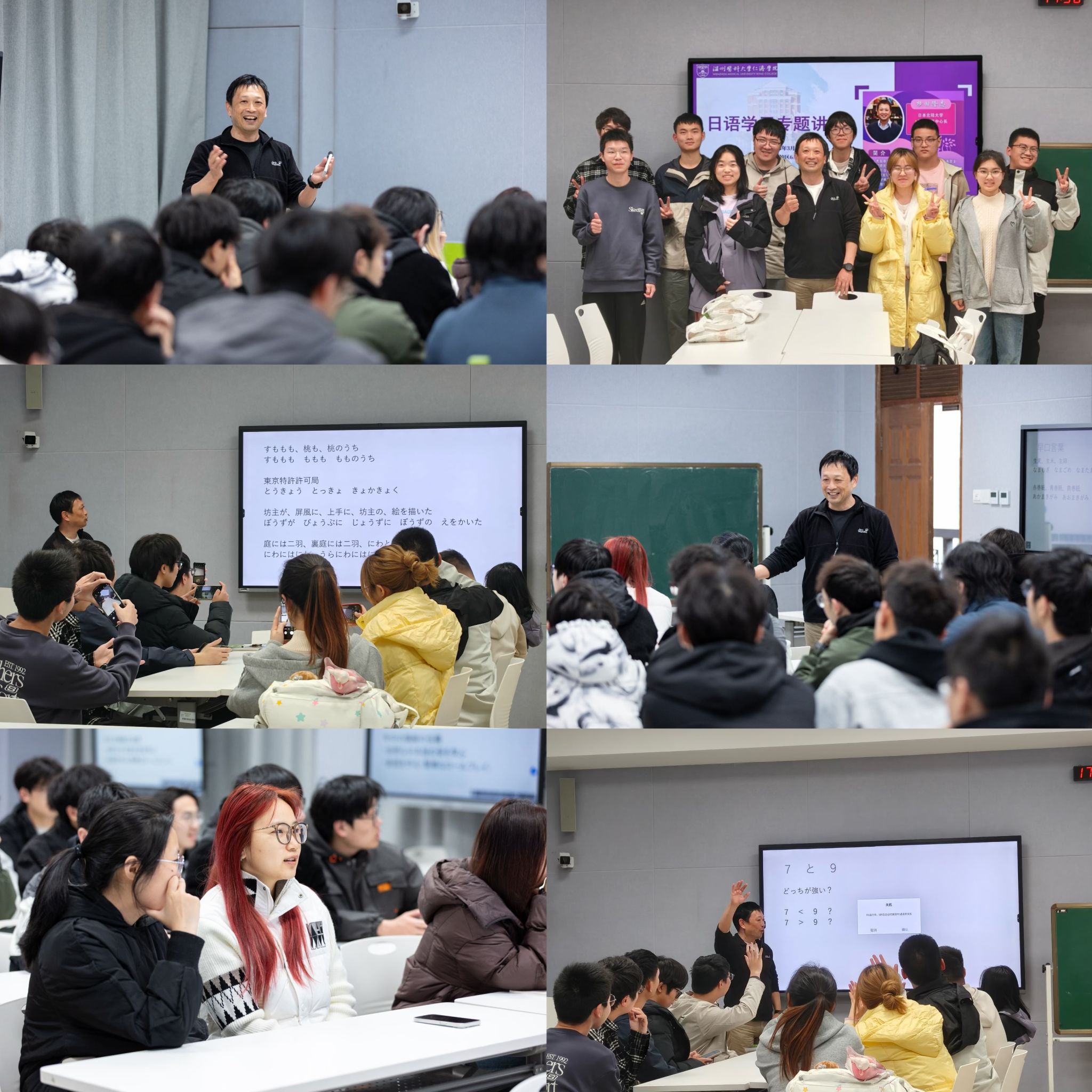 会后2天,横田教授举办日语角活动,与日语辅修专业的10名员工开展了学习绕口令、回文和固定表达等互动,让员工们在轻松愉快的氛围中提升了日语表达能力;他还前往滨海校区,为大一、大二日语专业的109名员工带来了“练习自我介绍”的主题讲座,通过小组活动和两人配对练习帮助员工反思以往自我介绍中的问题;他在茶山校区为大三日语专业的40名员工做“学习自然的日语”专题讲座,通过角色扮演和单词练习,让员工们在互动中掌握了更加地道的日语表达方式。教授用生动的案例、丰富的教学经验,深入浅出地讲解日语学习的技巧与方法,员工表示收获颇丰。