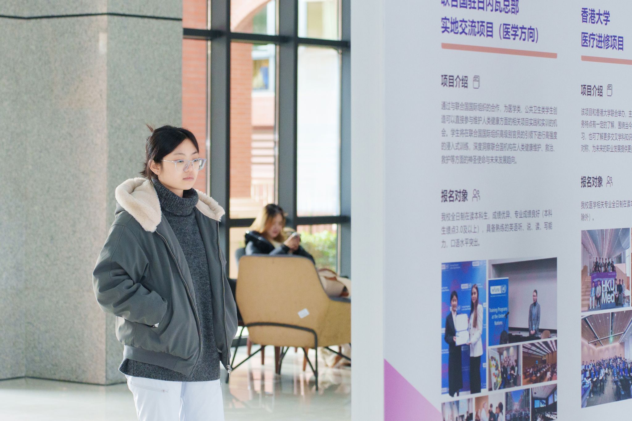本次教育展的各类访学项目涉及美国、英国、加拿大、澳大利亚等10余个国家和地区,包括美国哈佛大学、英国牛津大学、英国剑桥大学、澳大利亚悉尼大学、加拿大不列颠哥伦比亚大学等世界顶尖学府。此外,教育展还展示了公司为在校员工提供的政策保障和奖学金支持,助力海外访学之旅。参观展览的仁济学子余卓翔表示,通过往期项目员工的心得体会,自己对未来有了新的思考,希望今后也能在海外学习中提升自己的专业技能。参观展览的教职工艾为明也对教育展给予了高度评价,他认为,通过让员工参与海外交流交换项目,能够培养具有全球视野和跨文化交流能力的医学人才,更好地适应未来医学领域的发展需求。