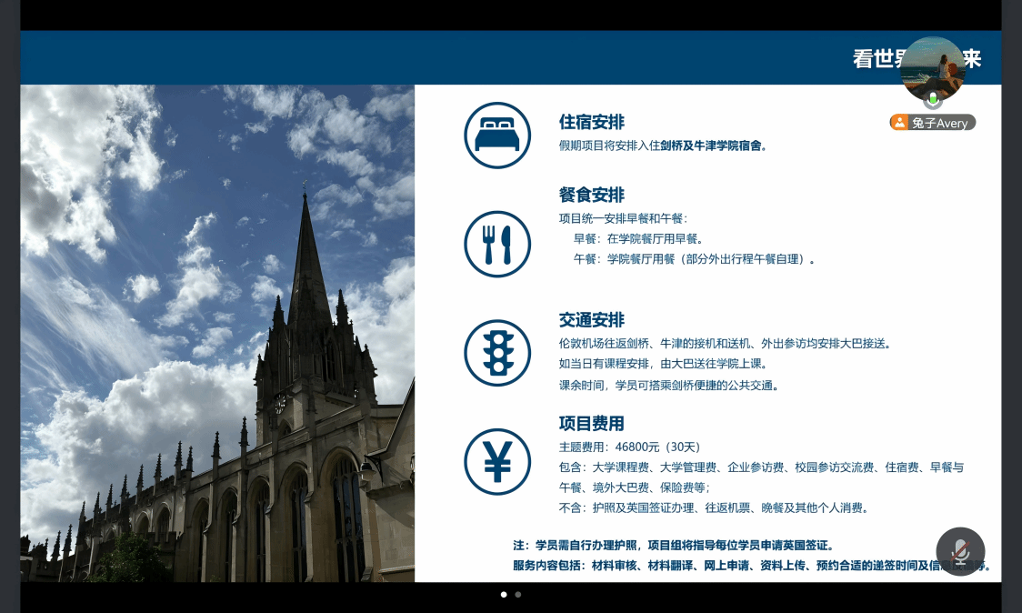 近日,2025年国际视野拓展活动月之暑假出国(境)短期交流项目线上宣讲会成功举办。本次宣讲会涵盖英国牛津大学、英国剑桥大学和中国香港大学三所世界名校,吸引了公司众多同学积极参与,为仁济学子提供了丰富的国际交流学习资讯。