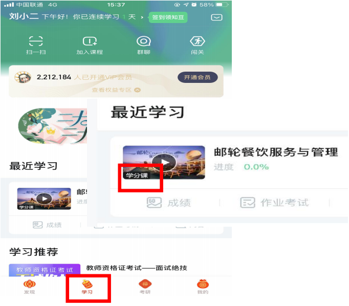 需要注意,请务必确认《劳动教育》是弹屏推送课程,点击确认课程,当课程角标显示【学分课】,即可确认加入学习(勿自己搜索《劳动教育》进行学习)。只有观看下角角标为“学分课”的课程视频才能获得学分,为“公开课”或“兴趣课”的视频观看不会结算学分。