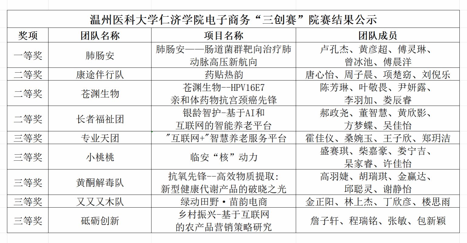 经员工个人申报,创新创业教育学部审核,通过专家评审,现将K1体育电子商务“三创赛”院赛结果公布如下: