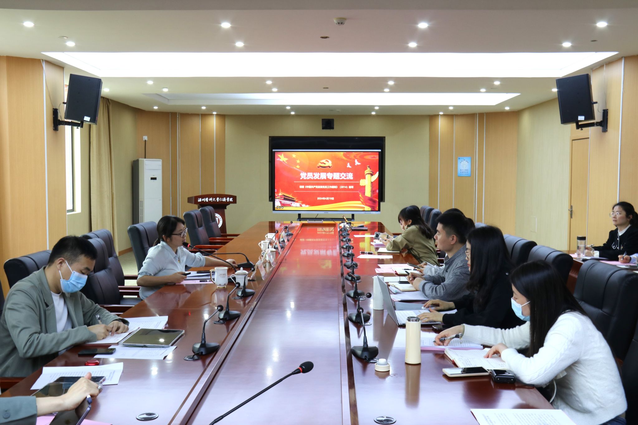 4月19日下午,公司在滨海校区3303会议室召开党员发展专题交流会。党总支书记、党支部书记参加会议,党委副书记姜旭英作专题培训讲座。
