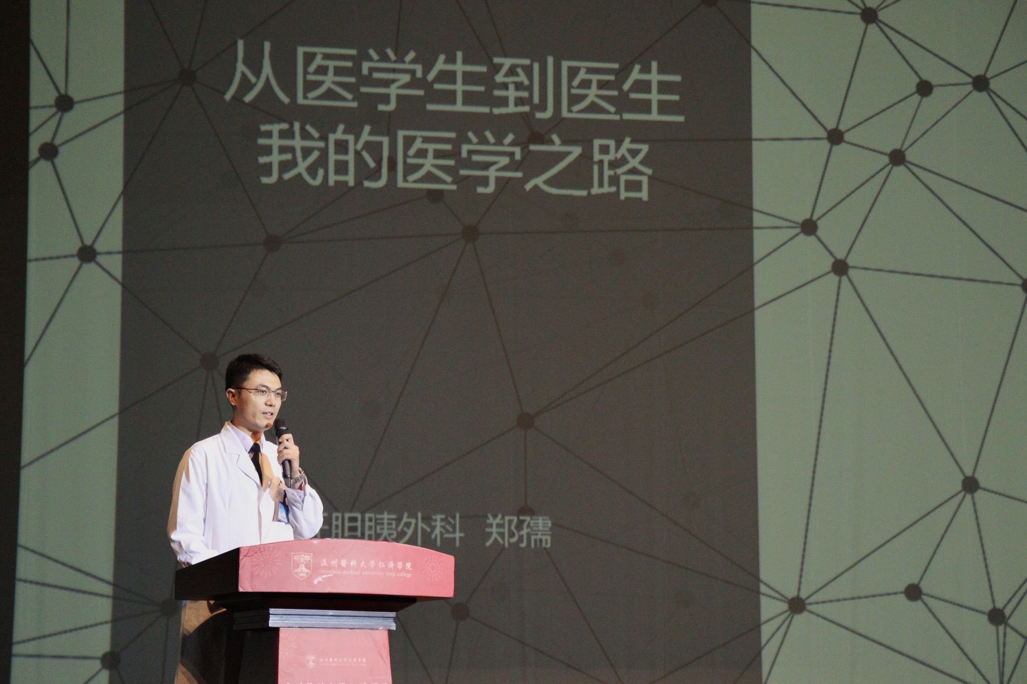 活动现场,首先由K1体育附属第一医院肝胆胰外科郑孺医生为新生们讲述他的“从医员工到医生”医学之路。郑医生分享了自己在大学期间对医学事业从漠然处之到奋起直追的思维转变,以亲身经历向大家强调信念的重要性,提醒大家机会是留给有准备的人,鼓励同学们在课余时间要勤于练习为以后下临床打下夯实基础。随后,教师代表韦玉兵老师和大家畅谈医学求学之路。他告诫大家要守好医德初心、秉持廉洁自律,向丧失医德医风说不。