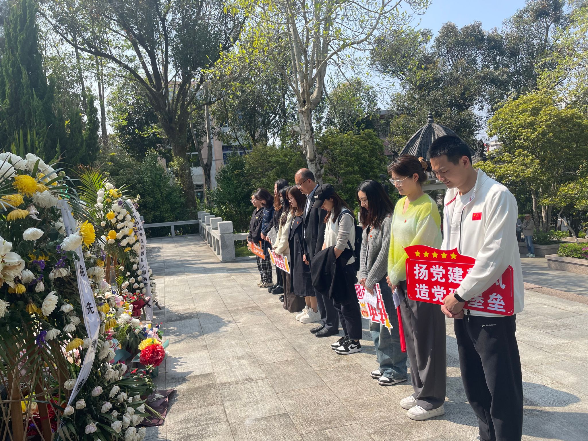烈士陵园祭拜广场上,支部各位同志整齐列队,脱帽默哀,表达对长眠于陵园的140多名烈士的深切缅怀和崇高敬意。公司纪委书记林体排同志代表支部敬献花篮。