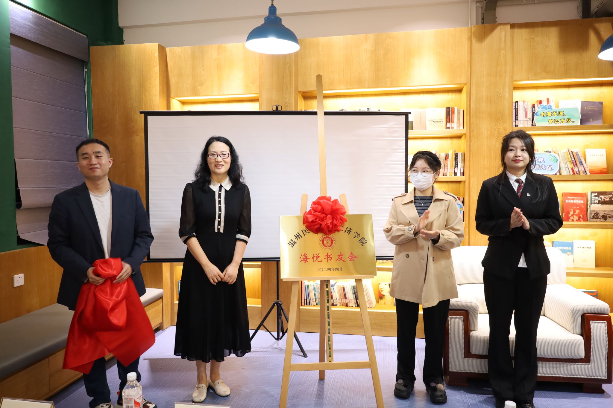 随后,在热烈的掌声中,施立松老师与公司师生共同为“海悦书友会”揭牌。这个隶属于公司仁文宣讲社的组织,立足洞头,致力于通过定期的读书会和作家讲座,激发同学们对阅读的热爱,帮助他们更全面地认识阅读的价值,促进个人成长和学术发展。教师代表向施老师颁发了“海悦书友会”顾问证书,以表达对她的敬意和感谢。