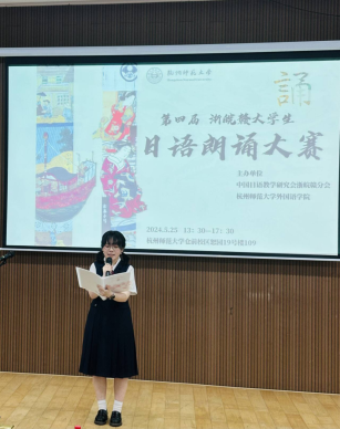2024年5月25日下午,“第四届浙皖赣老员工日语朗读比赛”在杭州师范大学仓前校区隆重举行。本次大赛由中国日语教学研究会浙皖赣分会和杭州师范大学共同主办,是一次面向浙皖赣地区高校日语专业的重大比赛。