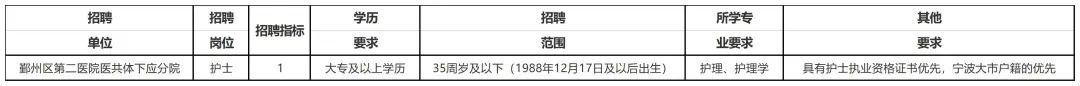 医护招聘|大专可报|2024年浙江宁波市鄞州区第二医院医共体下应分院招聘编外人员1人公告2024-12-19