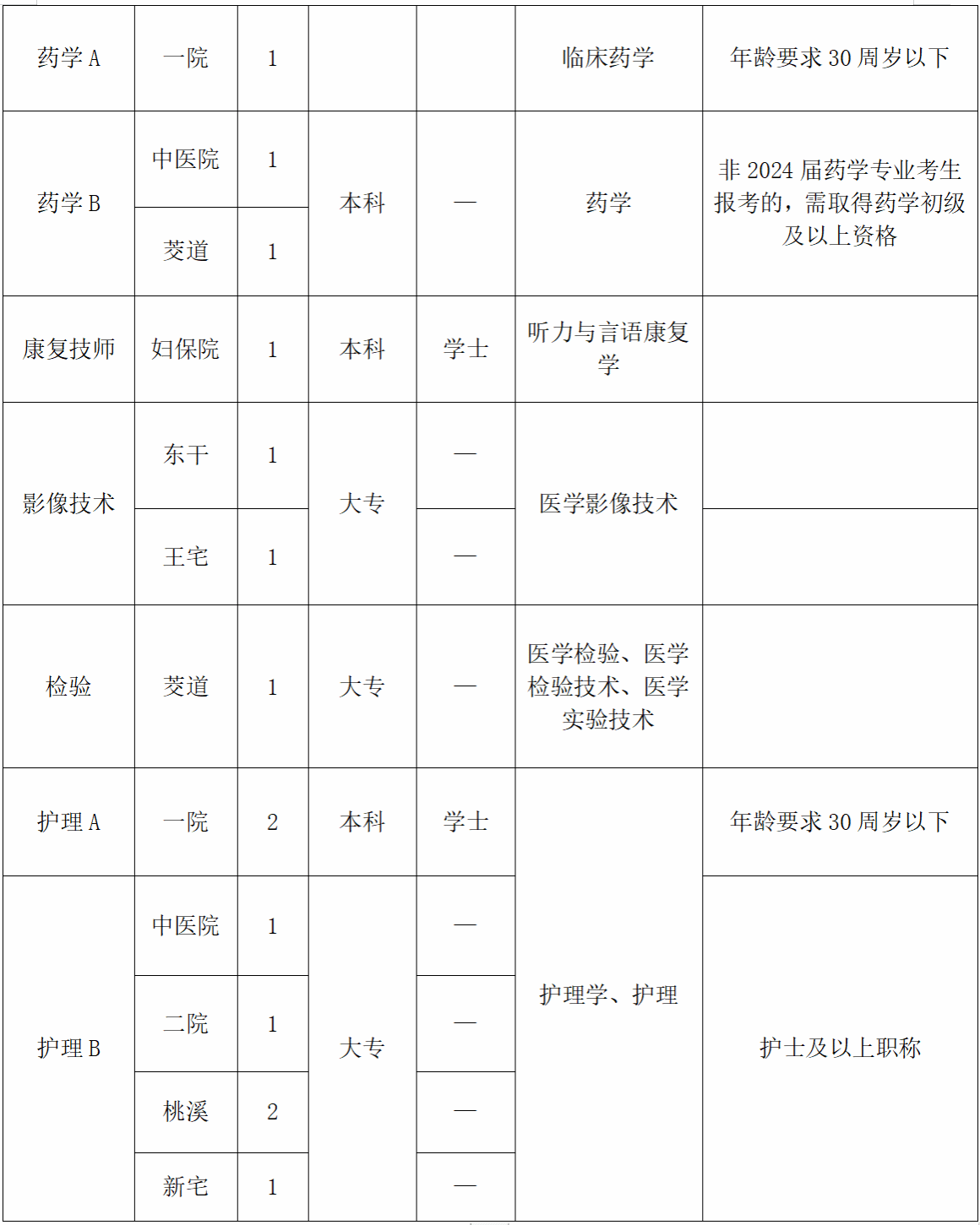 (1)医学基础:临床AB、精神科、影像诊断AB、麻醉AB、康复医师A、药学AB、康复技师、影像技术、检验岗位;