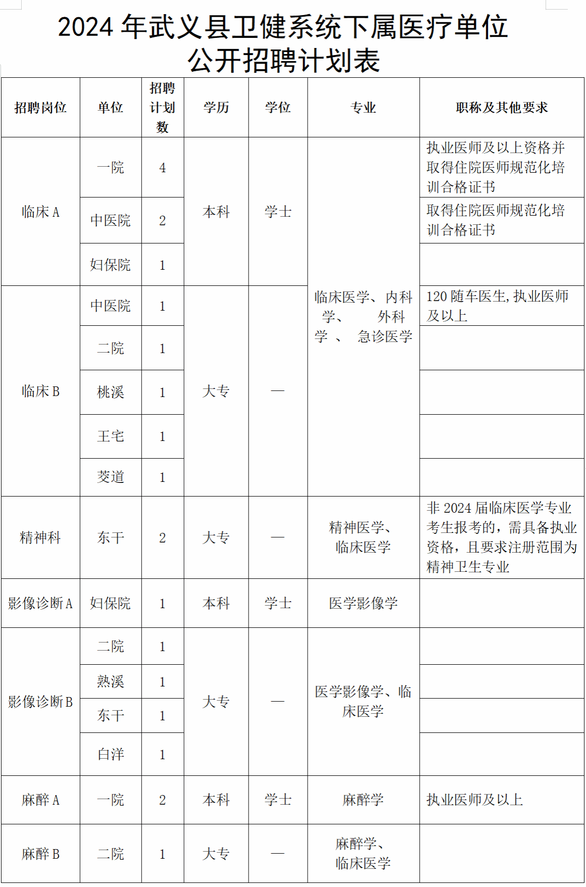 2024年武义县卫健系统下属医疗单位公开招聘计划表.doc