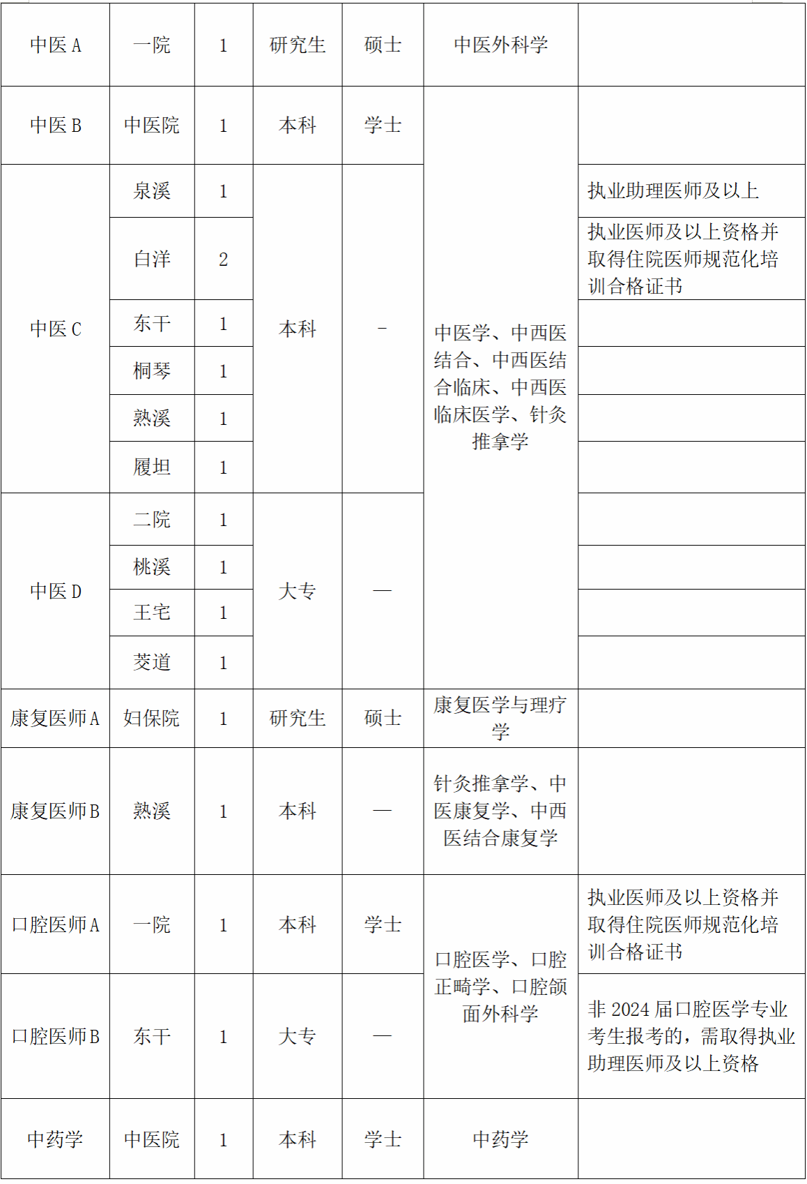 (2)中医基础:中医ABCD、康复医师B、中药学岗位;